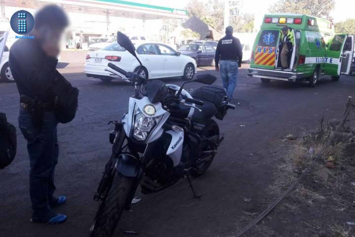 Los bomberos de Zitácuaro auxiliaron a un motociclista que quedó herido al ser impactado por una combi de pasajeros. Con el afectado viajaba una dama, quien resultó ilesa, pero sufrió crisis nerviosa, indicaron fuentes de rescate.