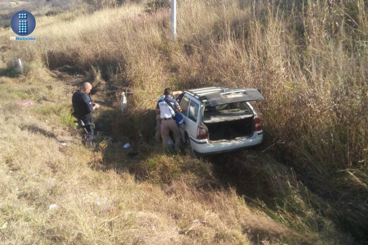 La tarde de este domingo, un sexagenario sufrió algunos golpes al sufrir un accidente automovilístico, en el cual su vehículo termino dentro de un desnivel a un costado de la carretera.