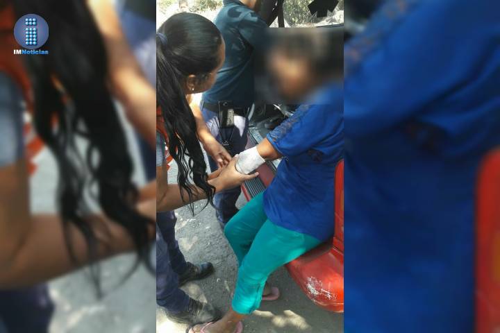 La víctima es María Z. de 39 años de edad, quien resultó con lesiones en la mano izquierda y tuvo que ser auxiliada por paramédicos de Protección Civil Municipal, quienes determinaron que las lesiones de la dama no ameritaban atención prehospitalaria.