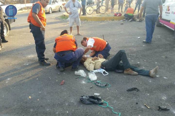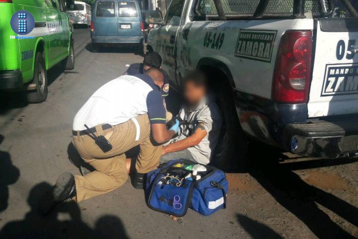 El accidente fue la madrugada de este martes en la esquina de las avenidas Morelos y 5 de Mayo en la colonia El Varillero, a la altura de la glorieta de Chandio. El paciente fue ayudado por los elementos de Protección Civil Municipal (PCM).