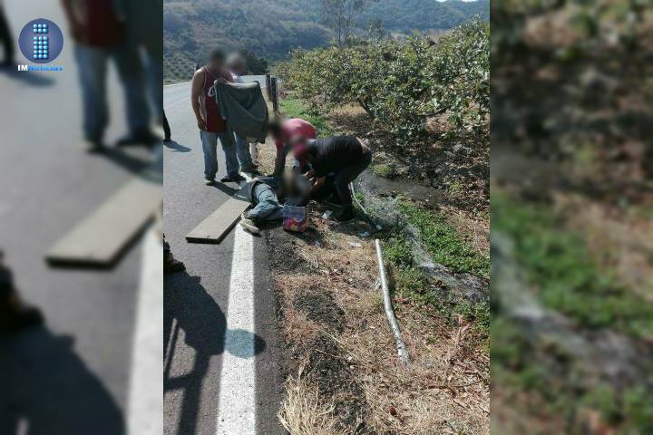 Doble accidente sufrió un peatón, pues tras tropezar con una manguera de riego agrícola fue impactado por un vehículo y quedó lesionado a la orilla de la carretera Zitácuaro-Tuzantla,