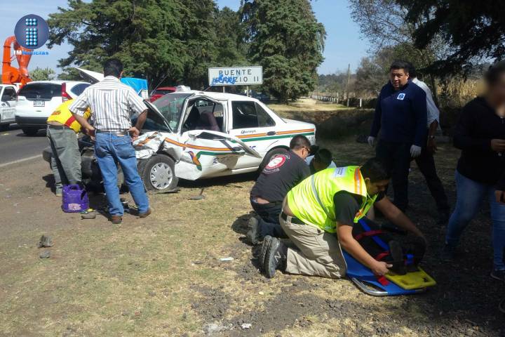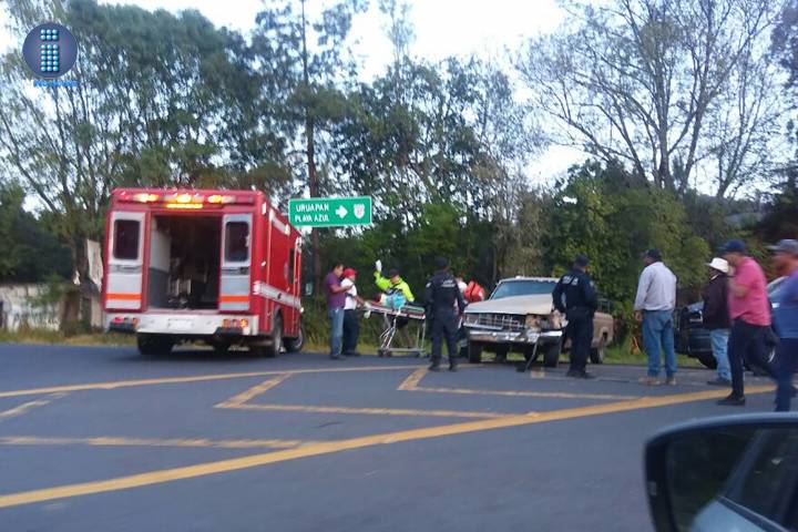 Tres personas resultaron lesionadas al colisionar frontalmente dos vehículos, uno de ellos taxi de la línea Colibríes de Quiroga, accidente que ocurrió sobre la carretera Morelia-Quiroga.
