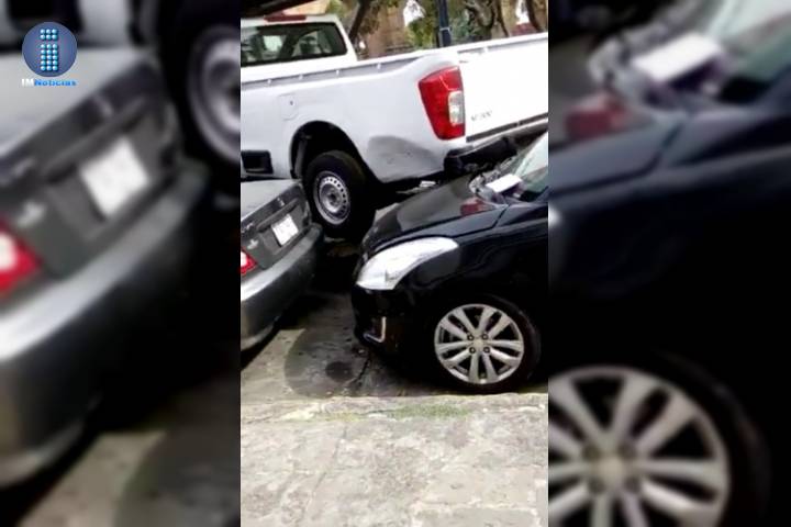 Un vehículo nodriza impactó a varios automotores que estaban estacionados a un costado del Bosque Cuauhtémoc en esta capital, el chofer trató de darse a la fuga, pero al final fue requerido, mencionaron contactos oficiales.