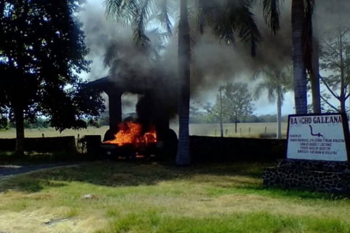 Una camioneta incendiada fue localizada en el acceso al "Rancho Galeana", ubicado a una orilla de la carretera federal Apatzingán-Aguililla en esta demarcación, se supo en la labor periodística.