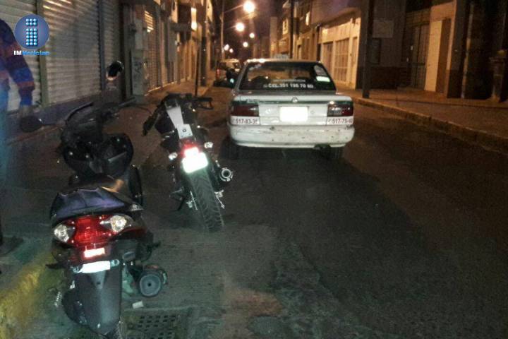 Un motociclista sufrió múltiples lesiones al derrapar su unidad y posteriormente chocar contra un taxi, cuyo chófer espero la llegada de las autoridades y los socorristas.
