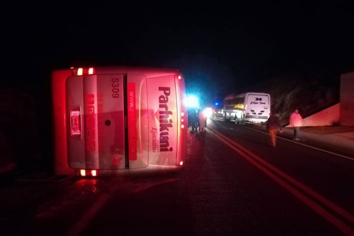 NOTICIAS 13/11/2017Cinco heridos en choque-volcadura entre autobús y camionetaUn autobús de la línea Parhíkuni colisionó contra una camioneta y enseguida volcó, a consecuencia del percance hubo cinco lesionados, entre ellos una joven, según los datos obtenidos por esta redacción.