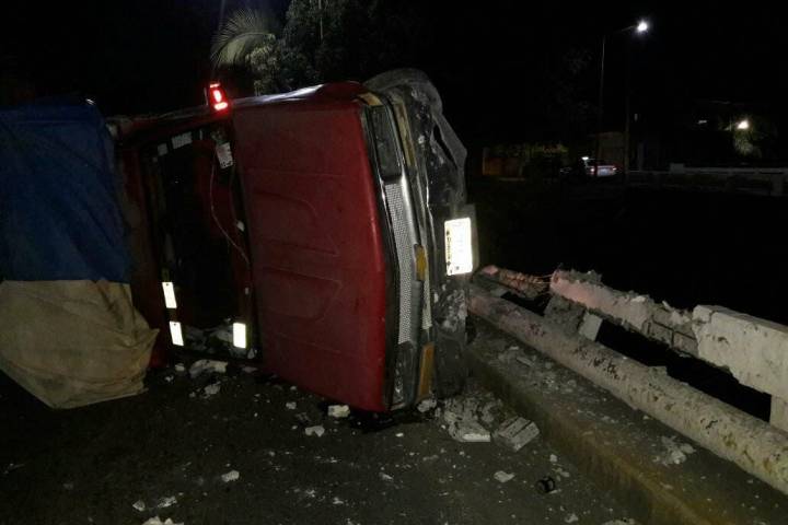 NOTICIAS 11/11/2017Camioneta se estrella contra la guarnición de un puente y vuelcaDos hombres resultaron ilesos después de que su camioneta se estrellara contra la guarnición de un puente y volcara, según los datos recabados por este medio.