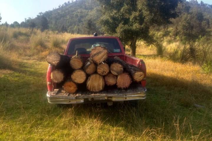 Una denuncia ciudadana alertó a elementos de la Policía Michoacán sobre la presunta tala clandestina en una zona protegida en la comunidad de Pomacuarán, por lo que los agentes se trasladaron al lugar.