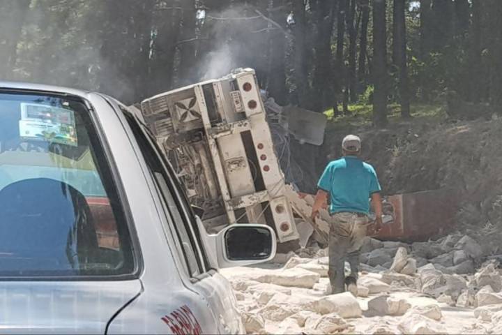 El accidente fue durante la tarde de este jueves. El automotor en cuestión quedó recostado sobre su lado derecho. Trasladaba varias toneladas de piedra para construcción.