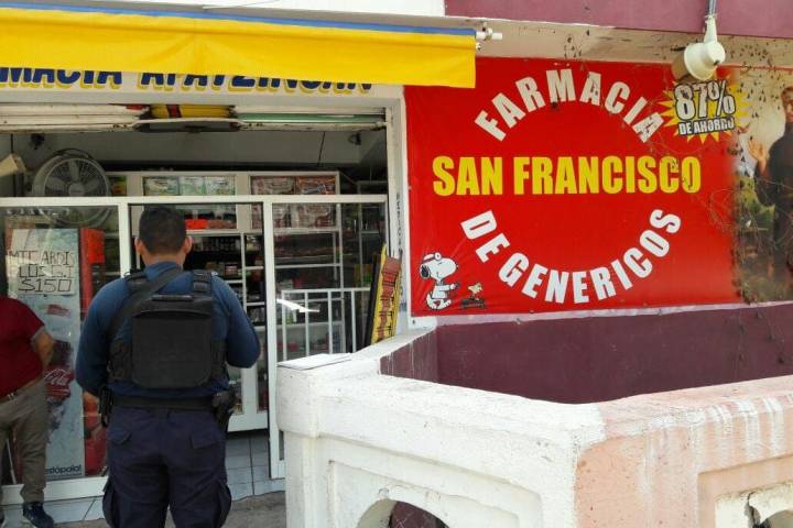 De acuerdo con fuentes policiales el negocio en cuestión es la Farmacia San Francisco, ubicada sobre la avenida Morelos a la altura del puente Hidalgo, a donde entraron dos hombres que previamente descendieron de una motocicleta.