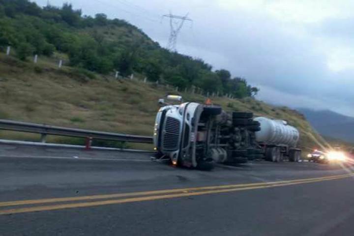 Una pipa volcó en la autopista "Siglo XXI", en este municipio. El percance no dejó víctimas. El tránsito fue afectado por varias horas, trascendió en la labor periodística.