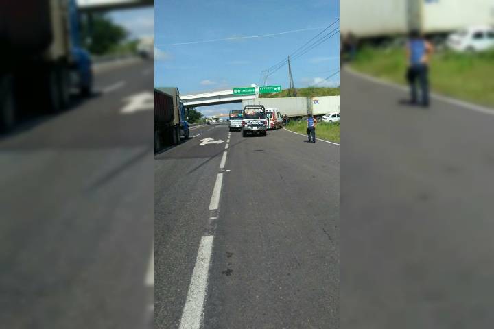 Un taxi y un tráiler protagonizaron un choque lateral, percance registrado en la carretera Apatzingán-Cuatro Caminos, en esta demarcación, el cual por fortuna no dejó víctimas que lamentar, según refirieron las autoridades respectivas.