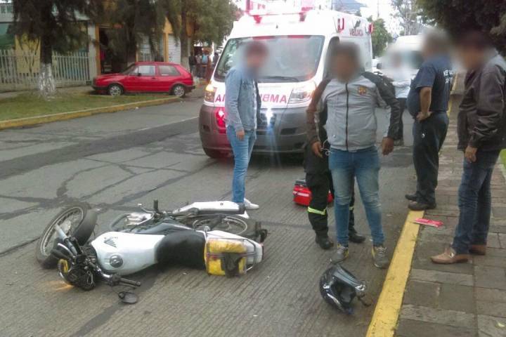 Golpes y un amargo momento sufrió un motociclista al ser impactado por uno de los costados de un vocho sobre la Avenida Acueducto durante la mañana de este viernes, comentaron fuentes de rescate.