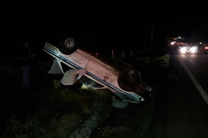 La mañana de este lunes, se registró un aparatoso choque entre un taxi y un vehÃculo particular provocando que ambas unidades terminaran volcadas. Tras el impacto el taxista quedo herido y el chofer de la otra unidad se dio a la fuga.