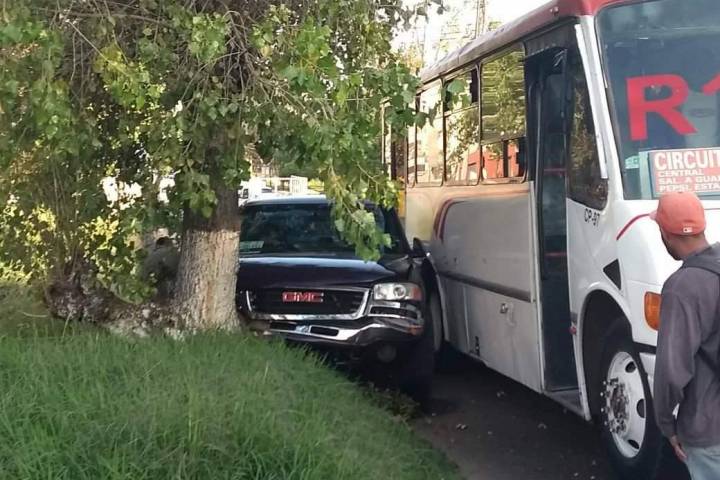 NOTICIAS 16/09/2017Se registra choque de camioneta contra microbús, en el Libramiento de MoreliaUna camioneta intentó rebasar por la derecha a un microbús de pasajeros y terminó prensada entre dicho vehÃculo y un árbol, esto en el Libramiento Revolución de esta ciudad de Morelia. Por fortuna no hubo vÃctimas que lamentar.