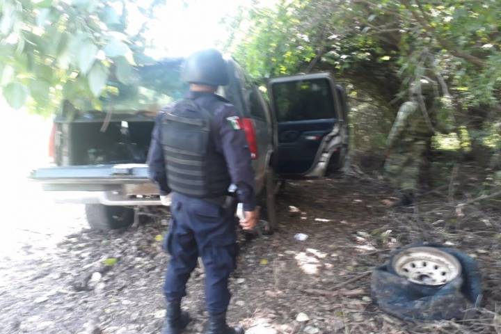 Primeramente la camioneta blindada marca GMC, línea Yukón, color arena, fue localizada en el municipio de Múgica, sobre la brecha que conduce a la comunidad de Gámbara; dentro de la unidad se encontraron siete cartuchos útiles calibre 7.62X39.