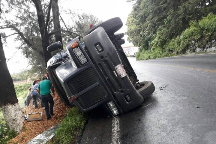 Un camión torton volcó en la carretera Apatzingán-Pátzcuaro, en esta ciudad, el conductor de la unidad sufrió algunos golpes que por fortuna no ponen en riesgo su vida, dijeron las corporaciones de auxilio.