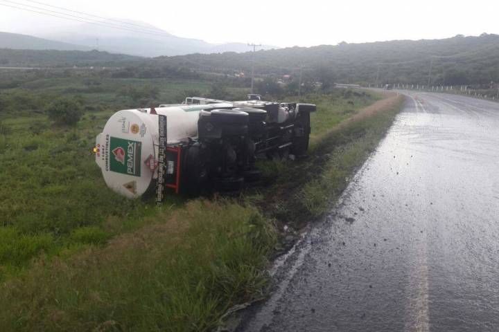 Un camión pipa de Petróleos Mexicanos (Pemex) se volcó y su conductor resultó lesionado Libramiento Norte del municipio de Zamora.