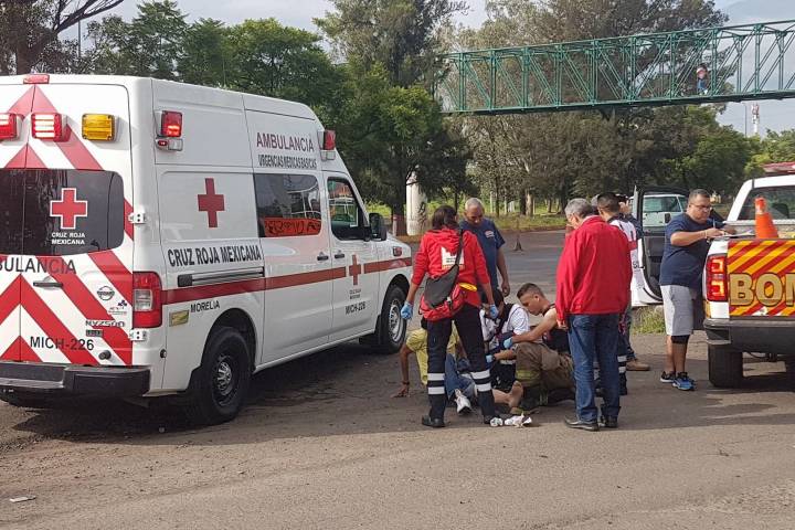 Varias contusiones y raspones sufrió un motociclista que desafortunadamente participó en el choque contra una camioneta sobre la lateral del Periférico República, a la altura del Estadio Morelos, de acuerdo con la información obtenida en el lugar del suceso.