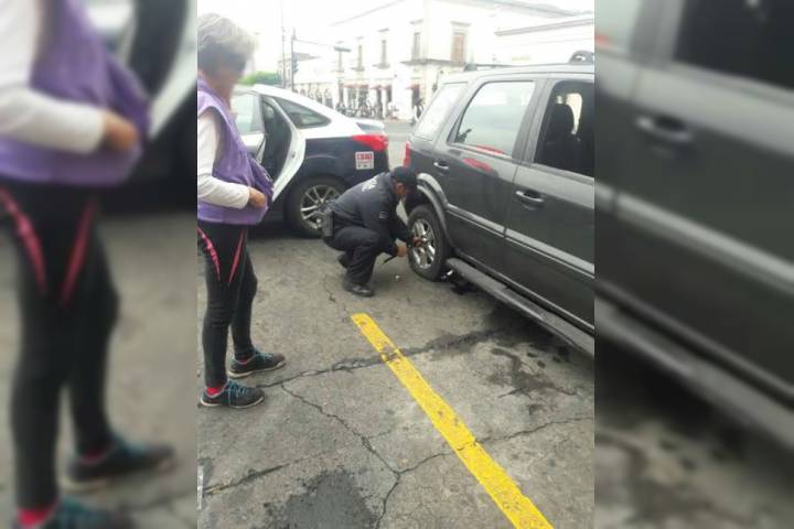 Una dama tuvo complicaciones para cambiar un neumático de su camioneta, el cual estaba pinchado, entonces se aproximaron los oficiales de la Policía de Morelia y le brindaron ayuda, de acuerdo con lo observado en el lugar del acontecimiento.