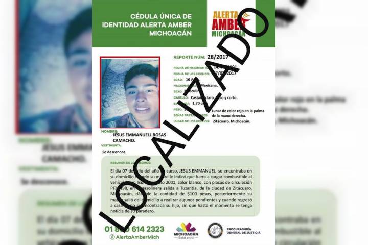 Trabajos de investigación realizados por personal de la Procuraduría General de Justicia del Estado (PGJE), a través de la Fiscalía Regional de Zitácuaro, permitieron la localización de un adolescente que el sábado pasado fue reportado como desaparecido.