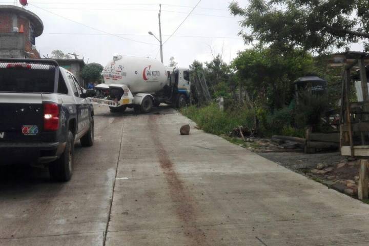 Una pipa de una empresa gasera que estaba a punto de volcar quedó en las calles de la colonia Las Verónicas, en esta población, afortunadamente no hubo víctimas que lamentar y se evitó una situación mayor gracias a Protección Civil y Bomberos de Tarímbaro (PCyBT), se supo en la labor periodística.