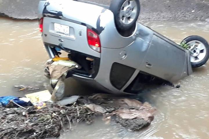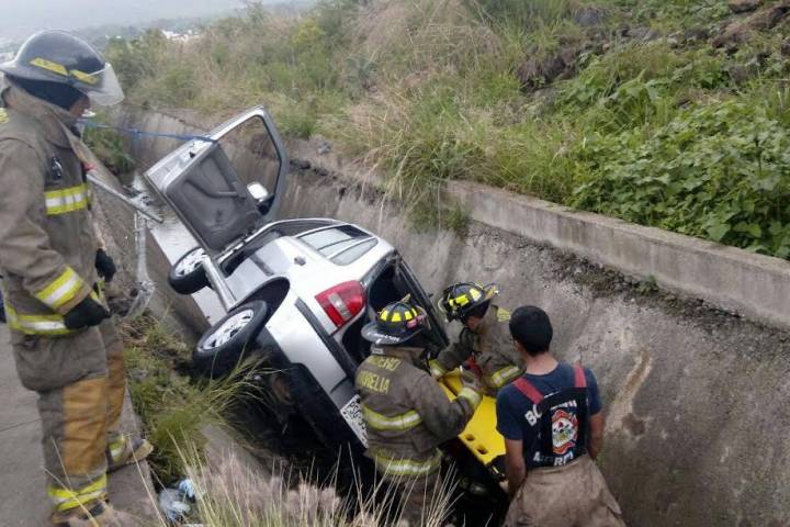 Una joven mujer sufrió múltiples contusiones cuando su vehículo cayó a un canal de dren pluvial ubicado en la Avenida Perla, correspondiente al fraccionamiento Villas del Pedregal.