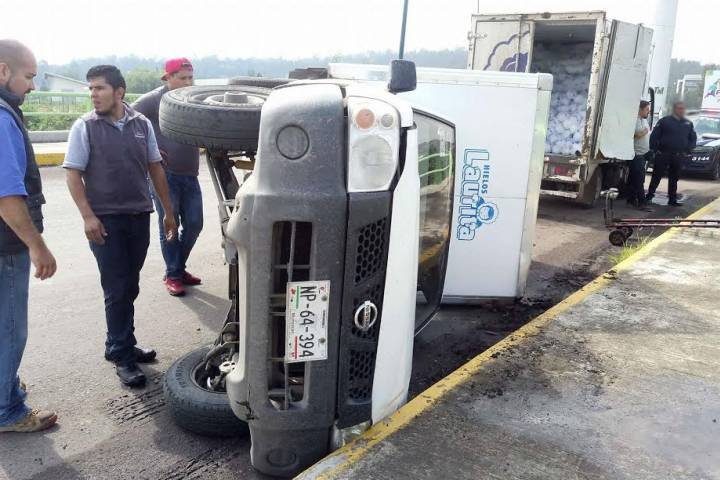 Volcada acabó una camioneta que transportaba hielo, accidente ocurrido la mañana de este lunes sobre una de las glorietas de la Avenida Miguel Hidalgo, además no hubo heridos ni fallecidos, indicaron las autoridades.