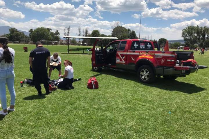 Un joven jugador de fútbol quedó lastimado después de protagonizar un choque contra un rival, instante en que los socorristas locales acudieron para brindarle ayuda, según los datos obtenidos por esta redacción.