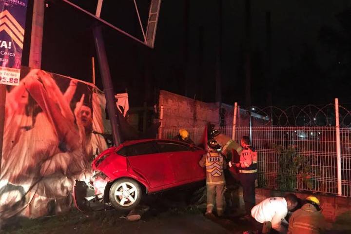 NOTICIAS 11/06/2017Tres heridos deja aparatoso choque de auto contra luminaria y malla ciclónica