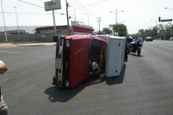 Un choque entre dos camionetas se registró la tarde de este martes en la Avenida Madero Poniente, una de las unidades volcó, afortunadamente no hubo personas lastimadas de gravedad, comentaron fuentes policiales.