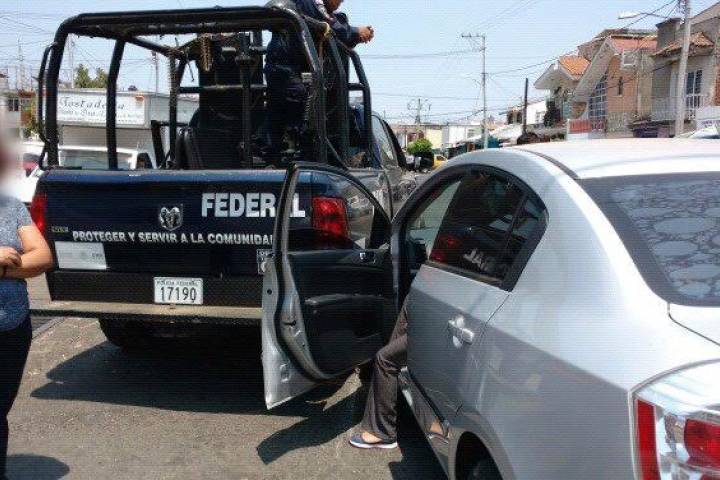 Un automóvil particular impactó a una patrulla de la Policía Federal (PF) que perseguía a unos "robacarros", detectados por haber hurtado una unidad momentos antes. Los delincuentes lograron escapar. El coche involucrado en el accidente era manejado por una mujer, ella y su hijo quedaron heridos.