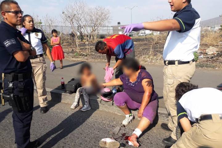 Una mujer y su pequeña hija sufrieron lesiones de consideración, al accidentarse en su motocicleta, de este accidente varios elementos de Tránsito y Vialidad que observaron el incidente, auxiliaron a las afectadas y solicitaron la presencia de una ambulancia.