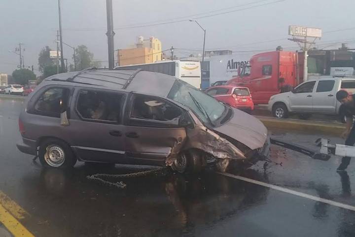 Daños materiales se registraron en la volcadura de una camioneta, la cual primeramente colisionó contra el poste metálico de un señalamiento vial ubicado en un camellón del Libramiento Norte, en esta ciudad de Morelia.