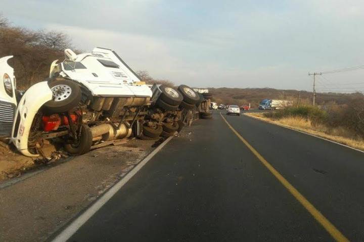 Un tracto camión cargado de fresas se volcó en la carretera Zamora-La Piedad.