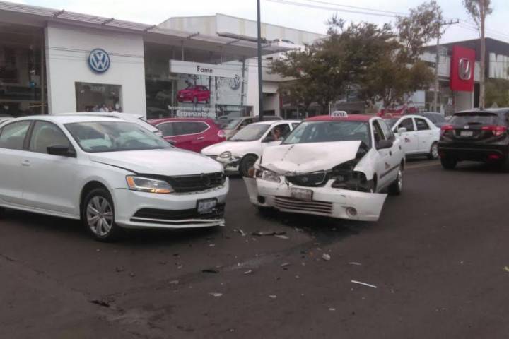 Sobre Avenida Acueducto y Acatita de Bajan, dos automóviles participaron en un choque, uno de ellos transporte de alquiler, percance que afortunadamente no dejó lesionados, únicamente daños en las mencionadas unidades, comentó la Policía.