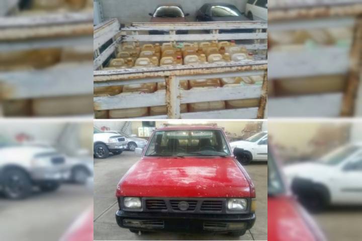 Una camioneta en la que estaban cargados dos contenedores de plástico con capacidad de mil 100 litros cada uno, los cuales contenÃan diferentes cantidades de gasolina de dudosa procedencia, fue localizada abandonada, esto en una movilización de la GendarmerÃa contra el robo de hidrocarburo.