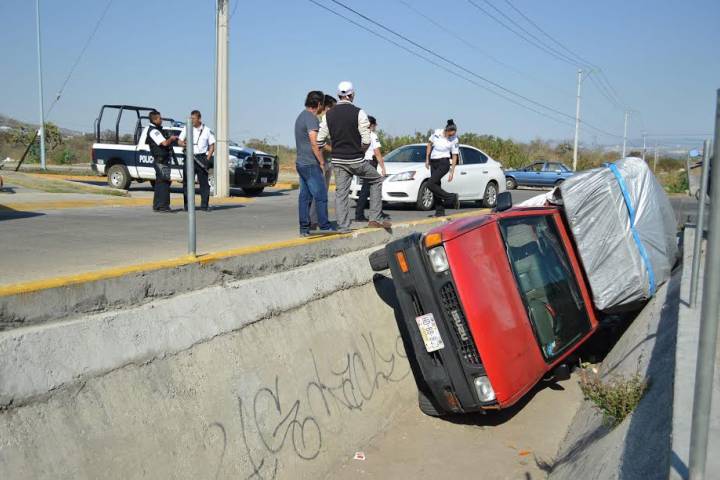 La tarde de este martes se registró un accidente vial en el que una camioneta terminó dentro de un canal pluvial, en el fraccionamiento moreliano Villas del Pedregal, percance en el que por fortuna no hubo vÃctimas que lamentar.