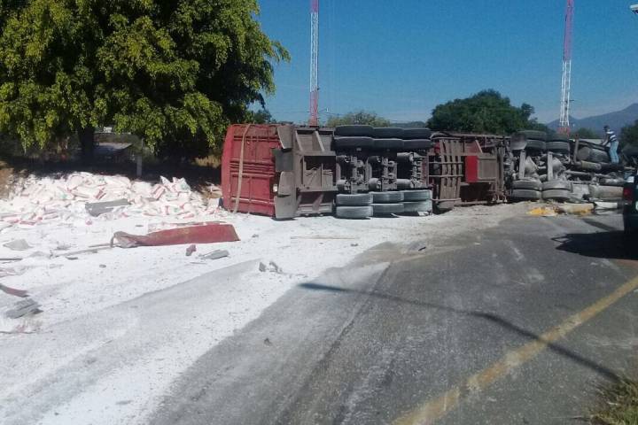 Poco después de las 09:00 horas un camión de carga, doble rodado, que transportaba cal, perdió el control de la unidad al llegar a la caseta, impactándose en el sitio y volcando el trailer que conducía.