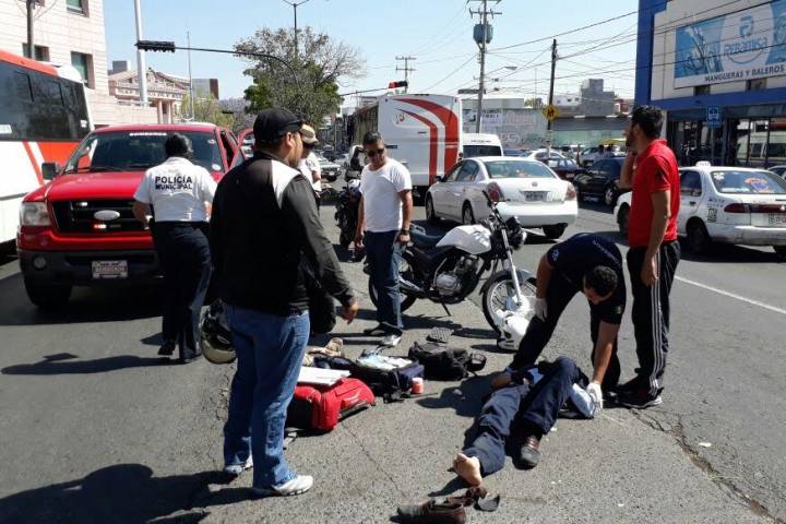 Tres accidentes en motos que pasaron durante la mañana de este lunes dejaron un total de cuatro lesionados, entre ellos un elemento de la Policía, de acuerdo con los datos recabados por este medio de comunicación.