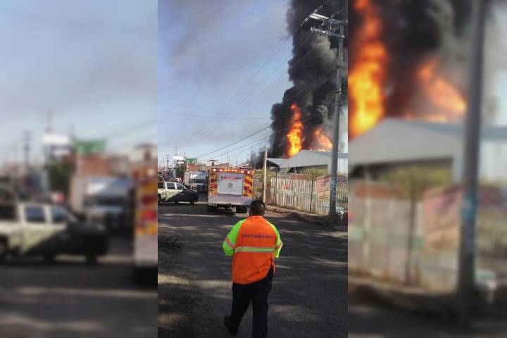 Al menos cinco vehículos quemados, así como dos bomberos lastimados al momento de que un civil hizo una maniobra para sacar otro carro, fue el saldo de un fuerte incendio de bodega en la colonia Constituyentes de Querétaro, aledaña al Mercado de Abastos. En el lugar se supo que entre los transportes calcinados hay camionetas y pipas, las cuales contenían gasolina presuntamente robada, trascendió en la cobertura de la noticia.