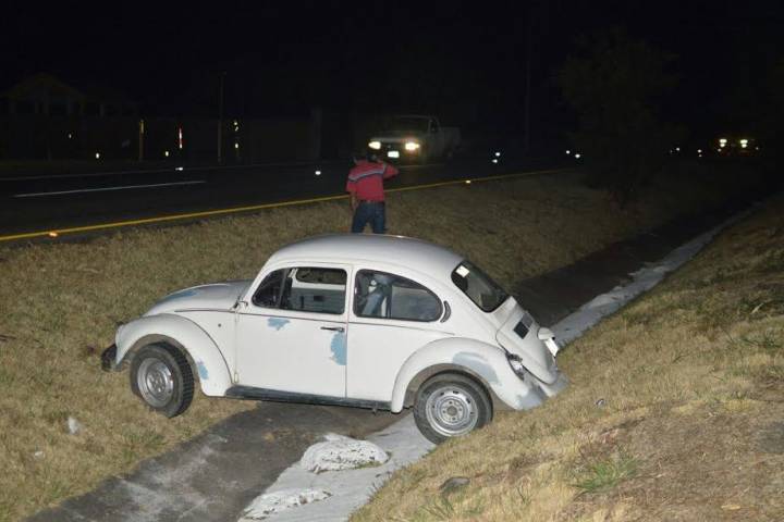 Un Vocho se salió de la cinta asfáltica y terminó "empuentado" en una cuneta del camellón que divide los carriles de ida y vuelta en la carretera Morelia-Pátzcuaro, en este municipio. Sólo hubo daños materiales.