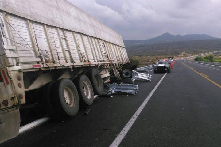 Parcialmente volcado terminó un tractocamión al estrellarse contra una banda metálica de contención, esto luego de haber salido accidentalmente de la nueva autopista Pátzcuaro-Cuitzeo. Afortunadamente el conductor no sufrió lesiones, explicaron algunos rescatistas.