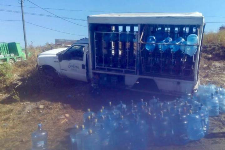 Tras quedarse sin frenos, una camioneta repartidora de agua purificada Santorini se estrelló contra un montículo de tierra y sus dos ocupantes resultaron lesionados, situación que ocurrió en esta ciudad de Zitácuaro, comentó la Policía en el lugar de los hechos.