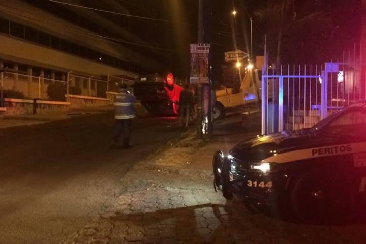 Un accidente vehicular en el que estuvieron involucrados tres automotores, entre ellos uno que estaba estacionado y resultaron afectados un árbol y un poste de luz, ocurrió durante la madrugada de este sábado en la subida de esta ciudad a la Tenencia de Santa María de Guido, percance que únicamente dejó cuantiosos daños materiales, a decir de fuentes policiales.
