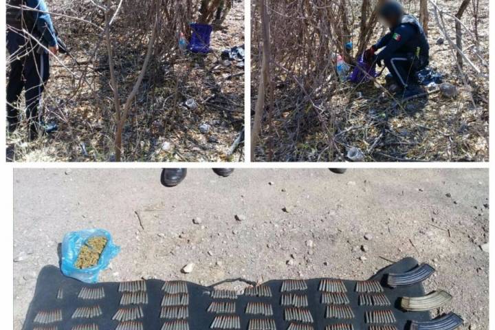 En el operativo fueron incautados un total de 492 cartuchos útiles y cuatro cargadores para calibre 7.62x39, que estaban entre la maleza en un predio de la ranchería de Graciano Sánchez.