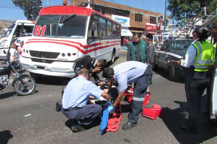 Severa fractura en la pierna derecha sufrió un joven motociclista al ser atropellado por un camión del transporte público urbano, incidente que ocurrió la tarde de este martes sobre la Avenida Madero Poniente, según los datos conseguidos al respecto.