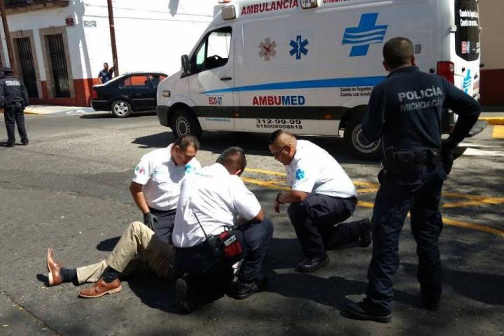 Un hombre resultó lesionado después de caer de su bicicleta en el Centro Histórico de esta ciudad de Morelia, instante en que fue atendido por unos paramédicos locales, informaron contactos de las corporaciones de rescate.