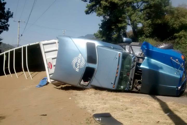 NOTICIAS 13/02/2017Aparatosa volcadura; ilesos tres ocupantesUn tráiler que se dirigía a esta ciudad de Uruapan, se volcó este mediodía en una curva ubicada a nueve kilómetros, poco antes de llegar a la desviación a Los Reyes; el chofer, su pareja y un menor de edad, resultaron ilesos.