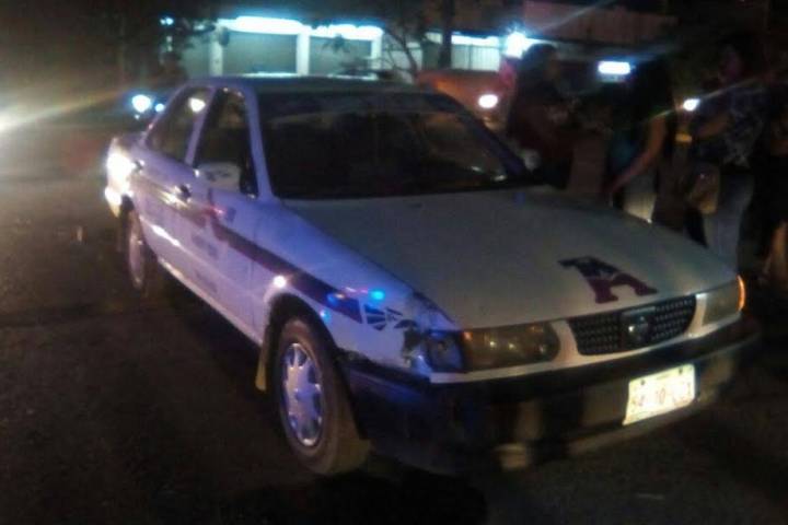 Una pareja que iba en una moto quedó herida al momento de que su unidad protagonizó una colisión contra un taxi en las calles de la colonia Ferrocarril, ubicada en esta urbe calentana.
